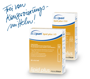 Mit BLUpan® lipid plus steht seit Oktober 2024 eine moderne Lösung für sehr trockene und chronisch trockene Augen zur Verfügung. Der enthaltene Lipid-Schutzschild-Komplex – bestehend aus Phospholipiden, Dexpanthenol, Hyaluronsäure sowie den Vitaminen A und E – unterstützt gezielt die Regeneration des Tränenfilms.