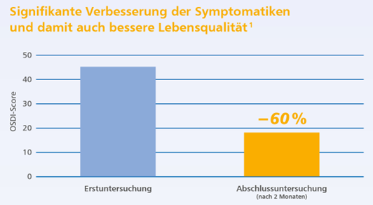 Wie eine klinische Studie1 zeigt, kann BLUpan® lipid plus mit Hyaluronsäure und Dexpanthenol den Ocular Surface Disease Index (OSDI) signifikant senken. Bei regelmäßiger Anwendung wurde die subjektive Krankheitslast um rund 60 % reduziert.